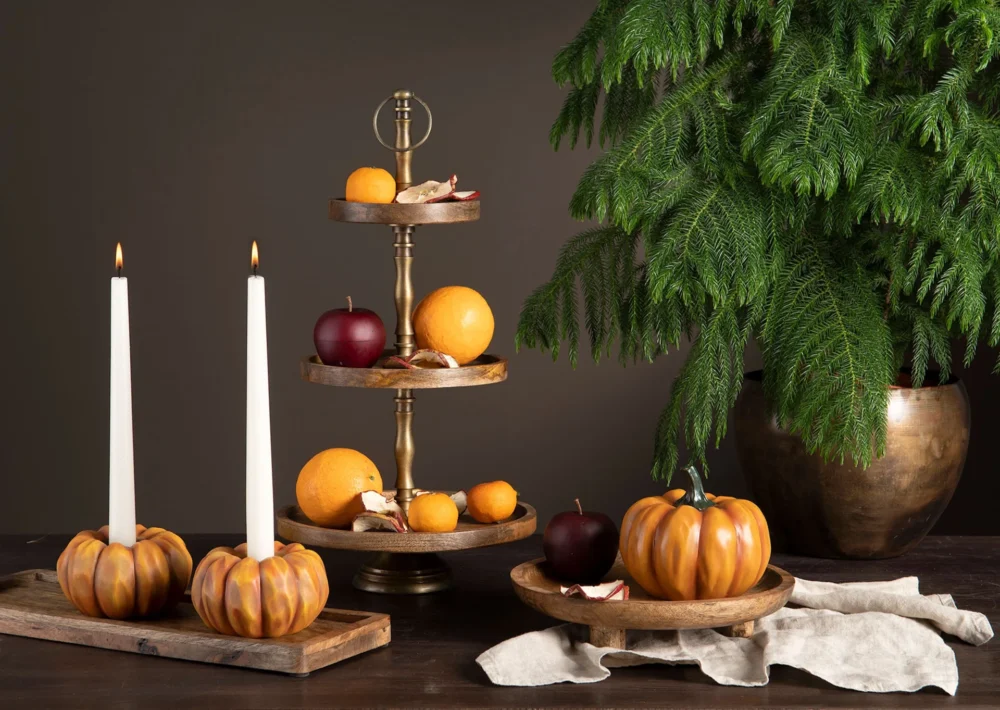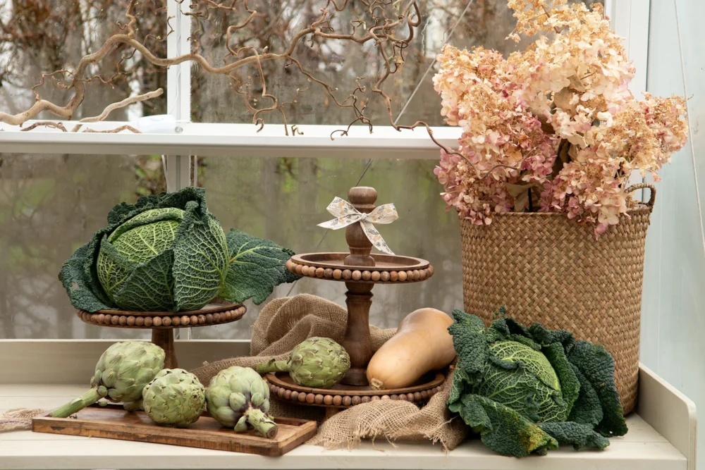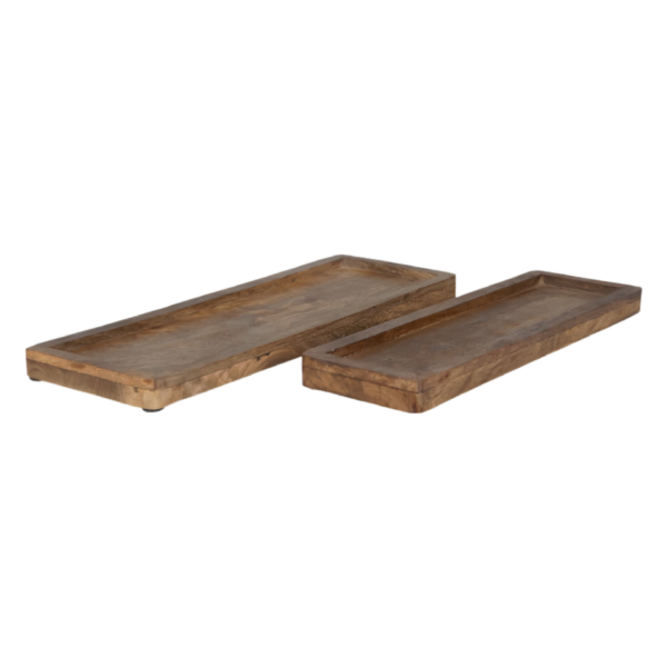 Set med två brickor i trä som är perfekt för att duka upp frukt och grönt på middagsbordet.