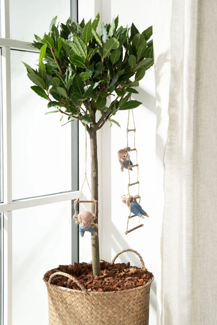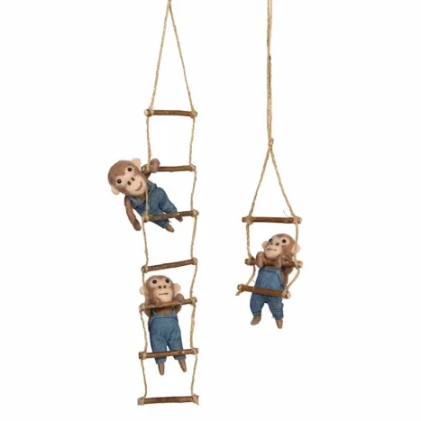 Apor gjorda av ull som klättrar på stegar. Perfekt när du vill ha en lekfull dekoration eller blomsterarrangemang.